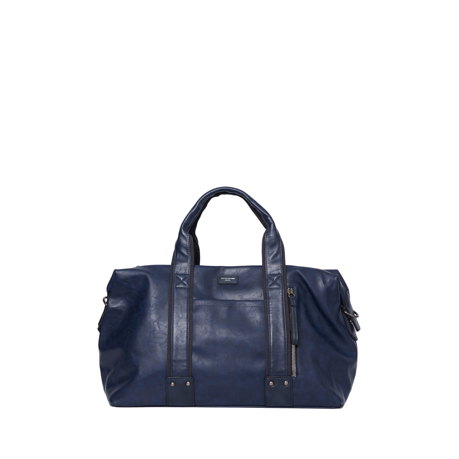 Вместительная дорожная сумка. Внутри одно отделение, два открытых кармана и один карман на молнии. Снаружи: на дне металлические ножки. Дополнительно: длинный ремень на карабинах. Высота основных ручек: 25 см. Размеры: ширина 48 см, высота 38 см, дно 19 см.