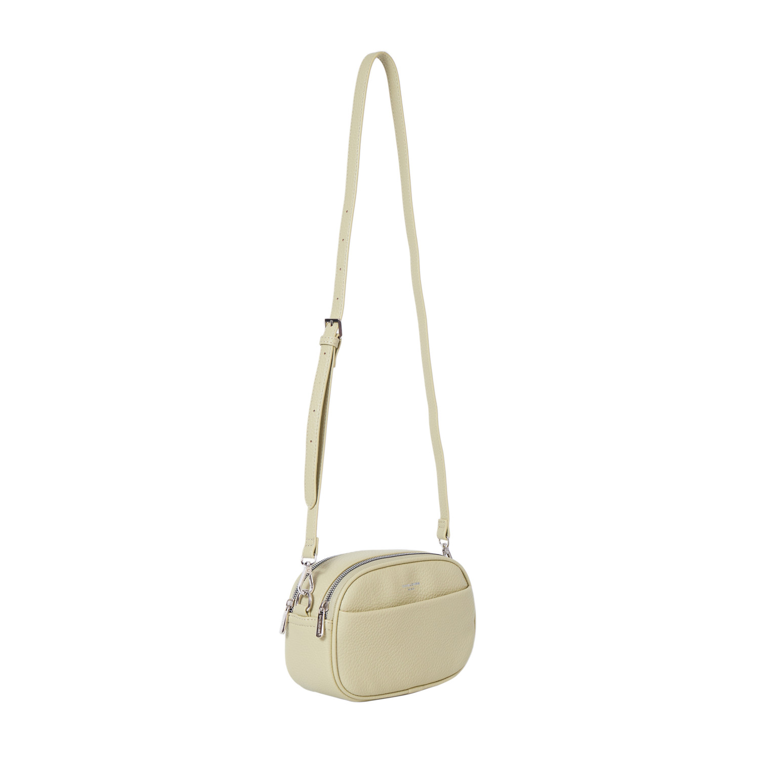 Сумка на два отделения, застегивается на молнию. Внутри имеются дополнительные карманы. Размеры: ширина 22 см, высота 15 см, дно 8 см. Длина ремня регулируется.