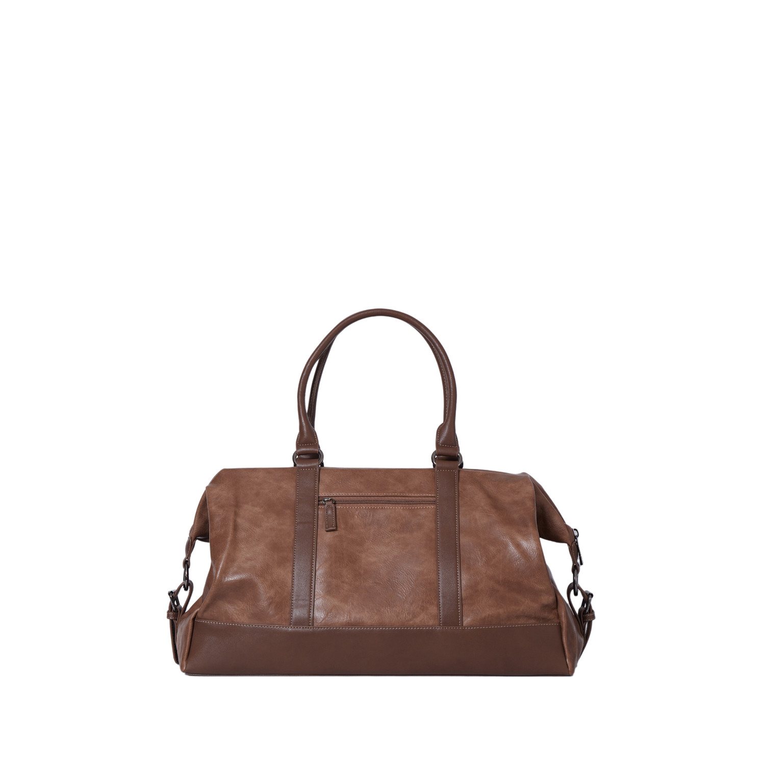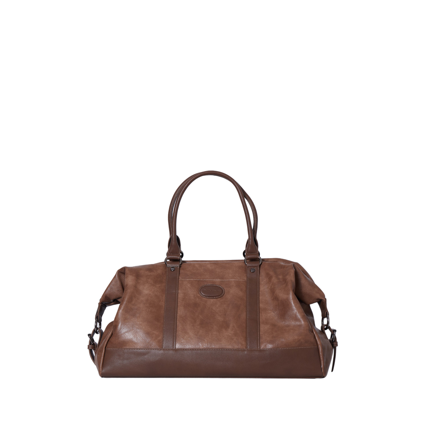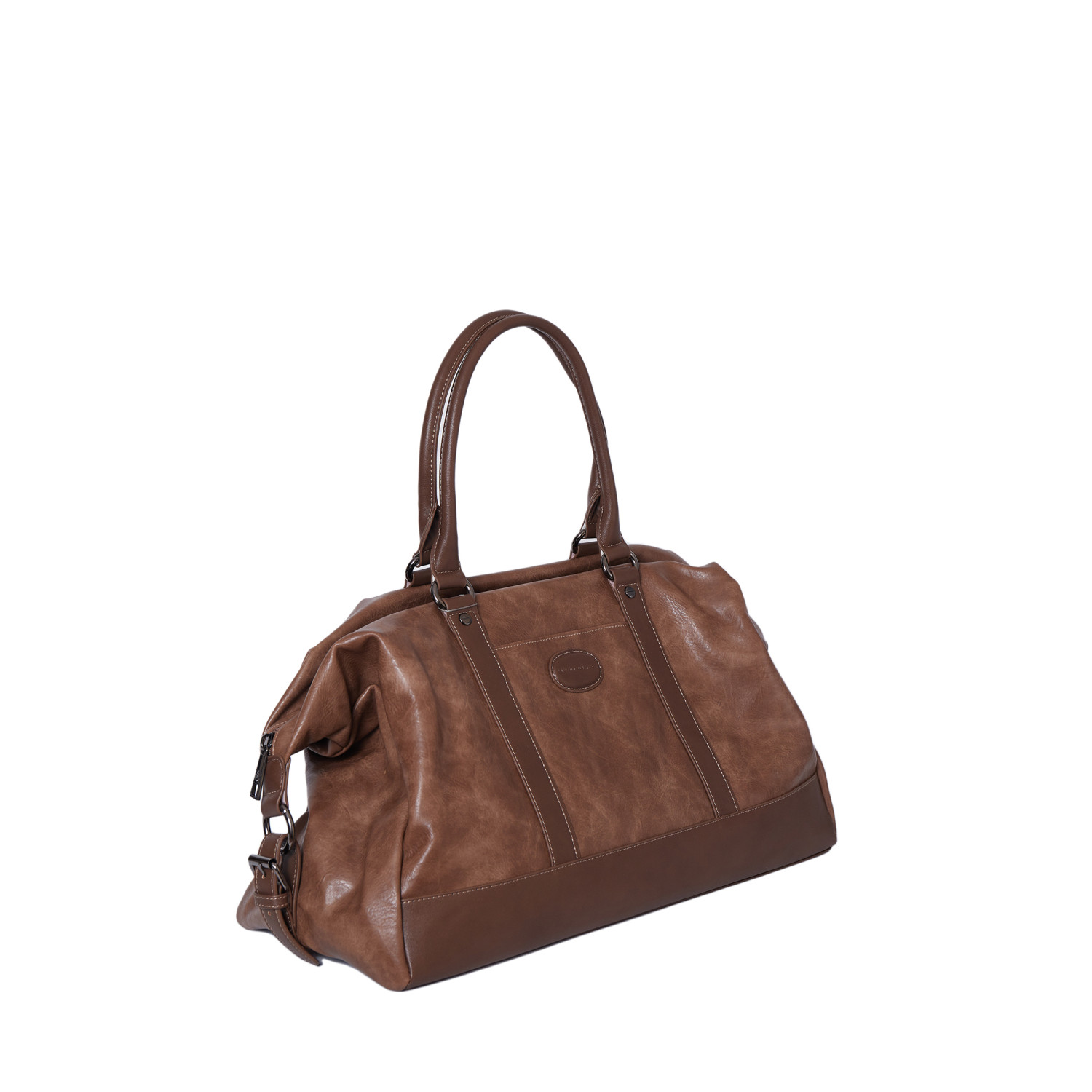 Вместительная дорожная сумка. Внутри одно отделение, два открытых кармана и один карман на молнии. Снаружи: на дне металлические ножки. Дополнительно: длинный ремень на карабинах. Высота основных ручек: 25 см. Размеры: ширина 51 см, высота 34 см, дно 23 см.