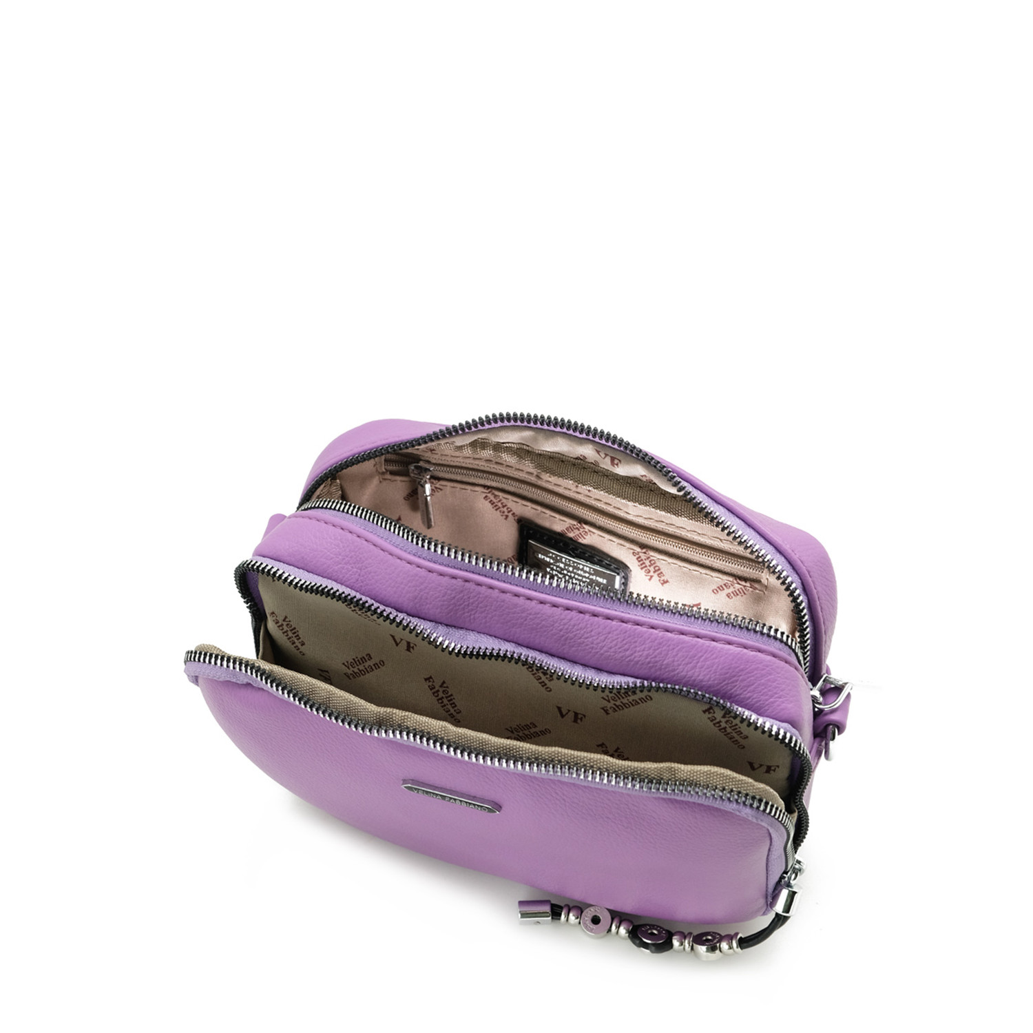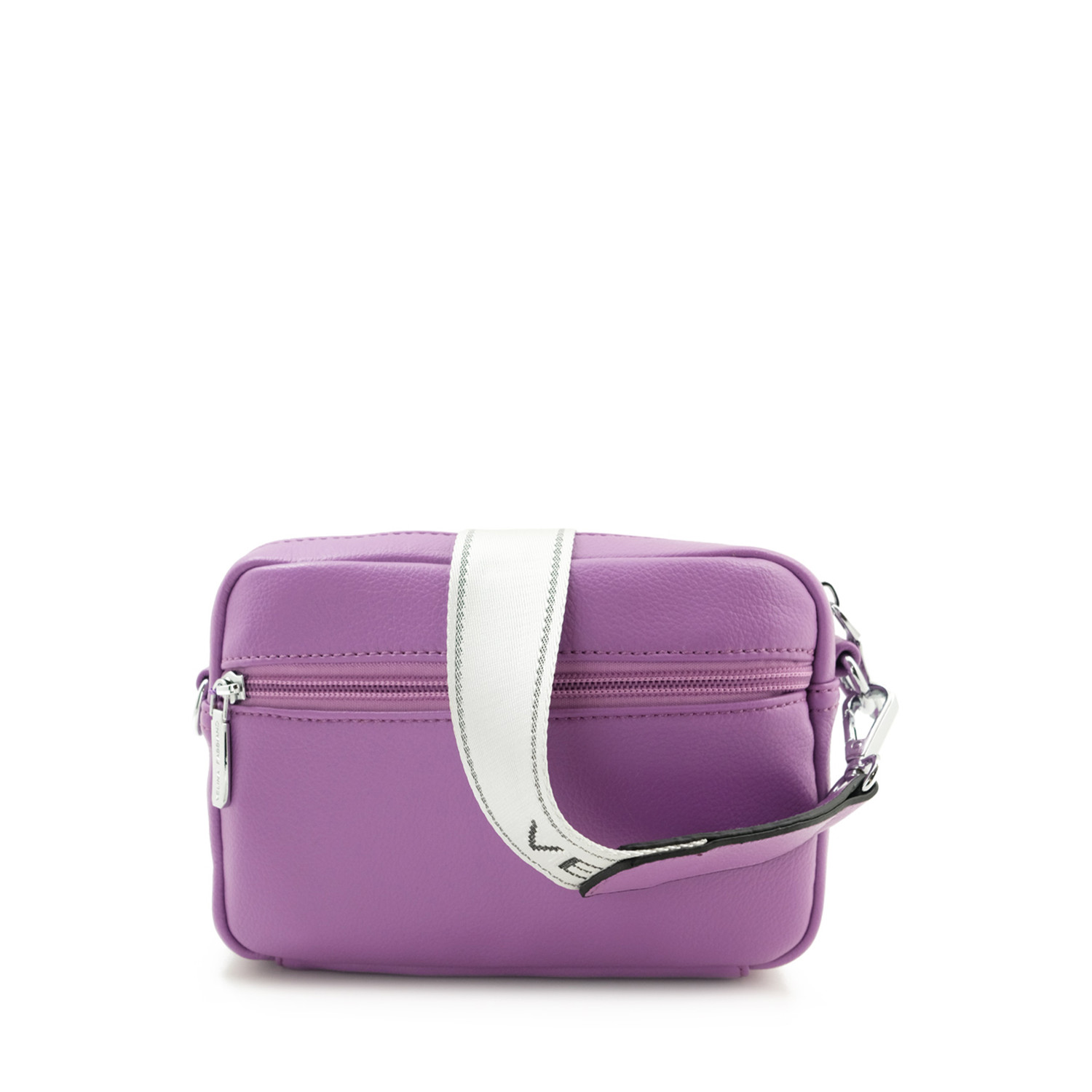 Сумка на два основних отделения. Внутри имеются 4 кармана для мелочей, 2 из них открытого типа, так же сзади карман на молнии. Регулируемый ремень 105 см. Размеры: ширина 22 см, высота 15 см, дно 10 см.