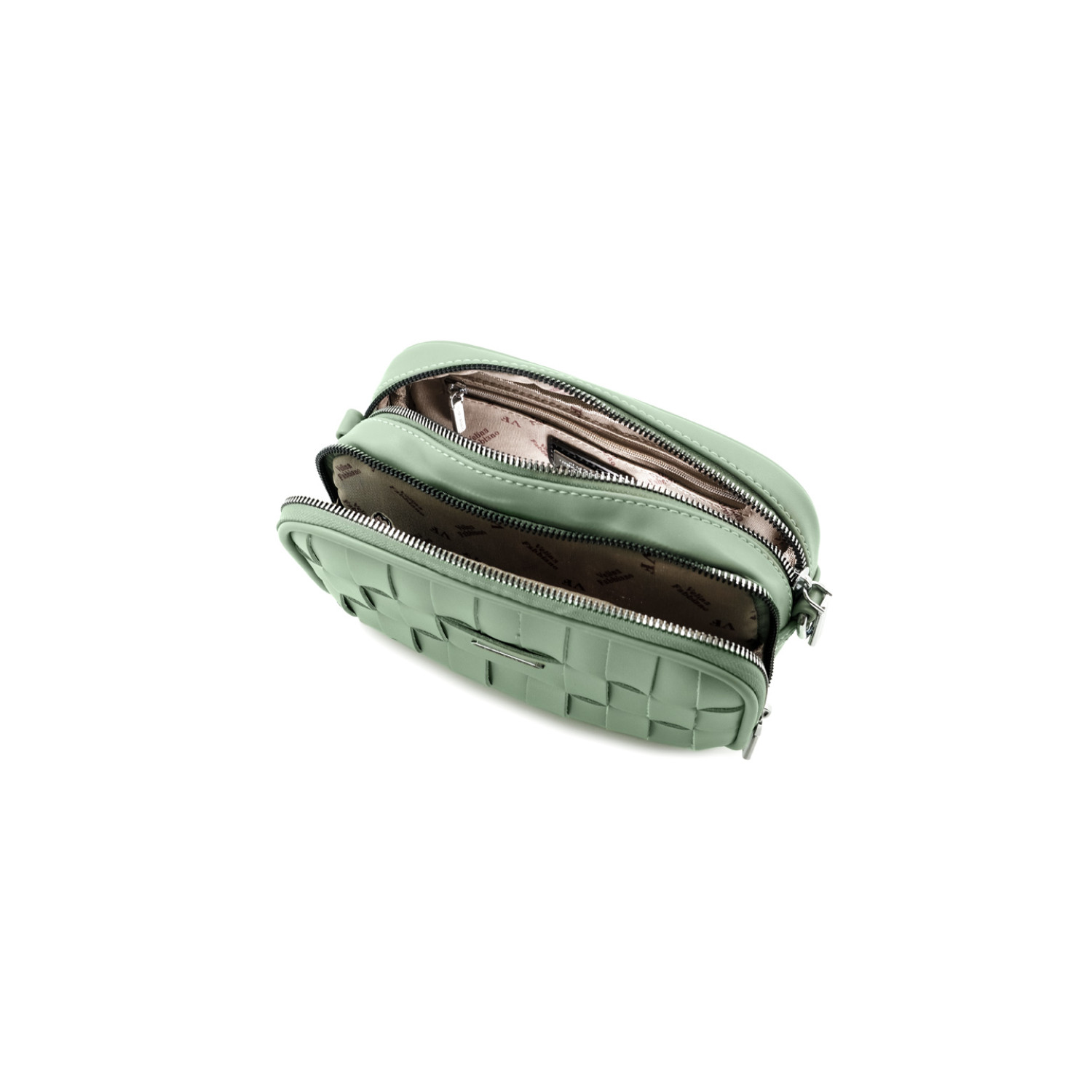 Сумка на одно основное отделение. Внутри один карман для мелочей. Так же имеется карман на молнии с лицевой и внутренней стороны. В комплекте съемный регулируемый ремень 110см. Размеры: ширини - 22см, высота - 15см, дно - 7см.