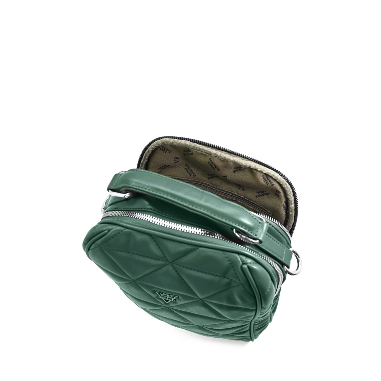 Рюкзак на 2 відділення на блискавці. Усередині три кишені для дрібниць. Позаду є кишеня на блискавці. Плечові ремені регулюються. Розміри: ширина 23см, висота 25см, дно 7см