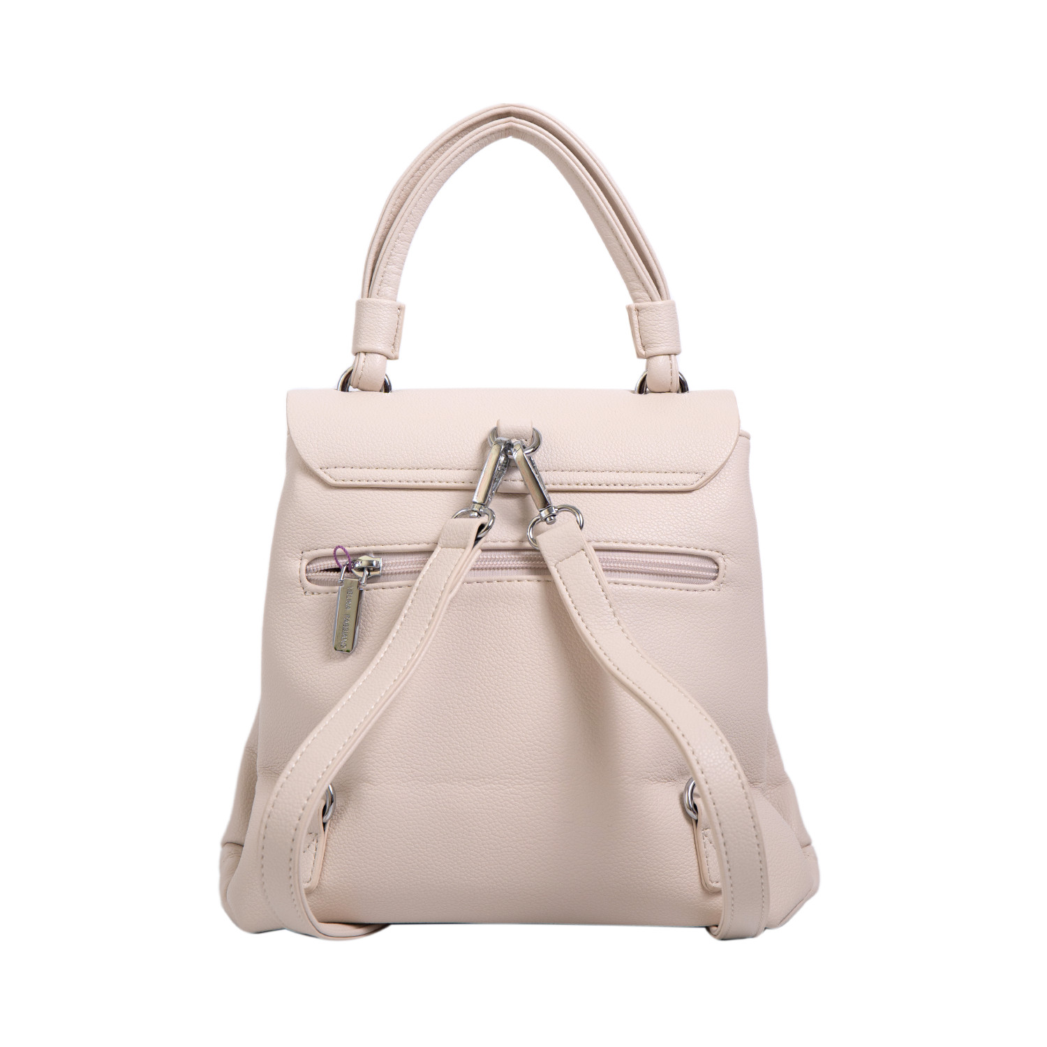 Рюкзак на одне головне відділення, що закривається на клапан. Позаду кишеню на блискавці. Усередині дві кишені, одна з них на блискавці. Є знімний регульований ремінь довжиною 120 см. Розміри: ширина 22 см, висота 28 см, дно 13 см. Розміри: ширина 24 см, висота 23 см, дно 12 см.
