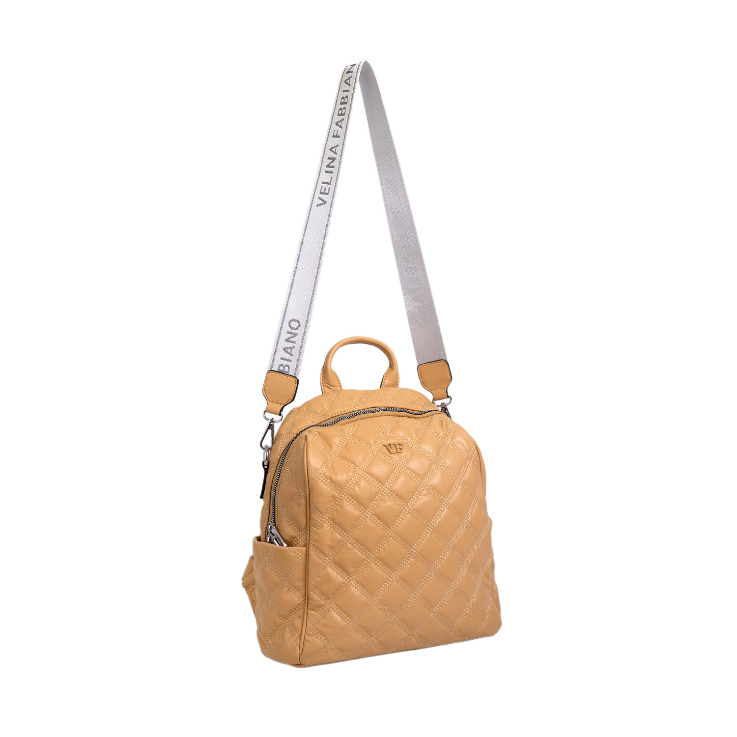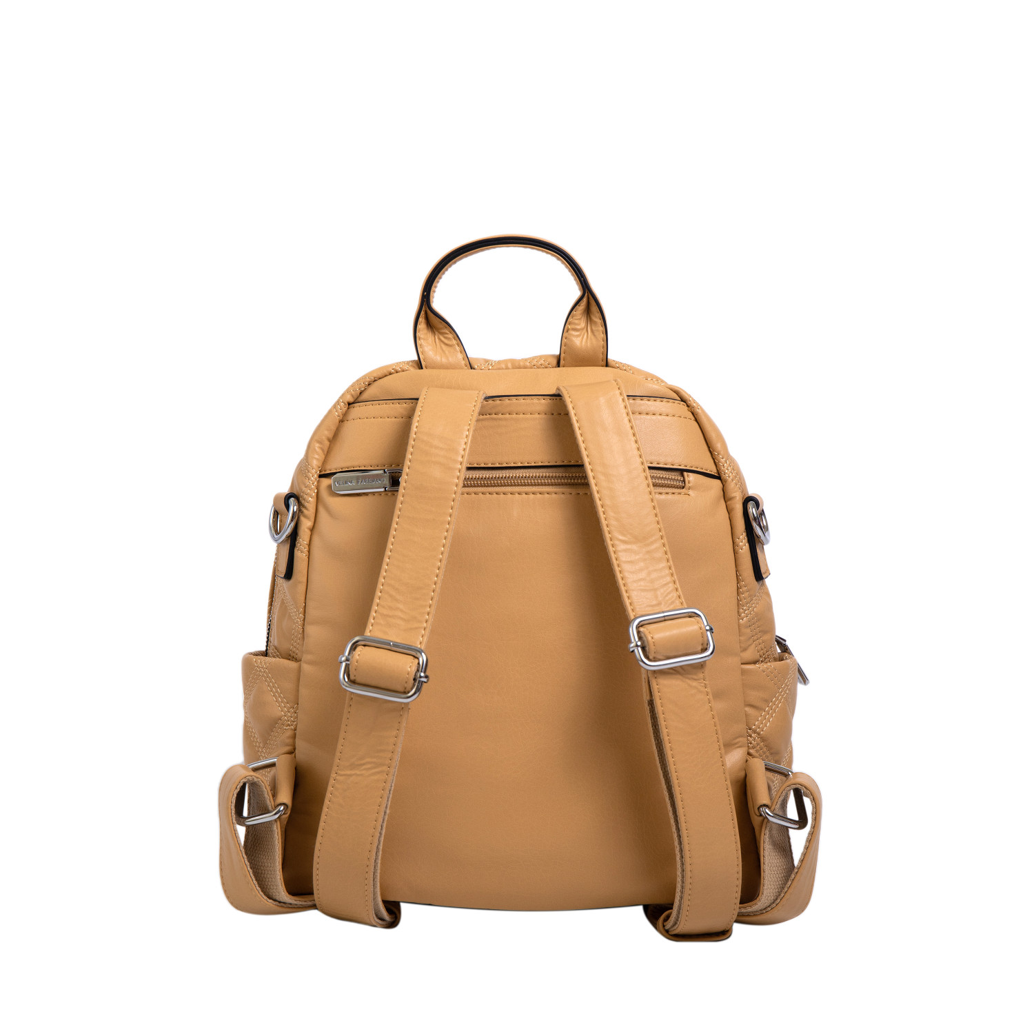 Рюкзак на одне головне відділення. На задній стінці кишеня на блискавці, з боків дві відкриті кишені Усередині підкладковий матеріал з логотипом виробника, на бічних стінках дві кишені на блискавках і три відкриті кишені. Фурнітура блискучі срібло. Плечові лямки вбудовані, регулюються по довжині, у комплекті ремінь-стропа у висоту 38 см. Каркас м'який. Розміри: ширина 29 см, висота 31 см, дно 12 см