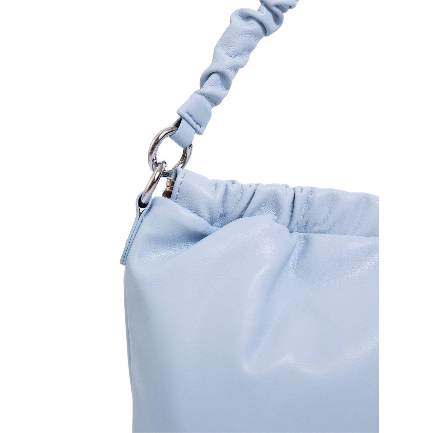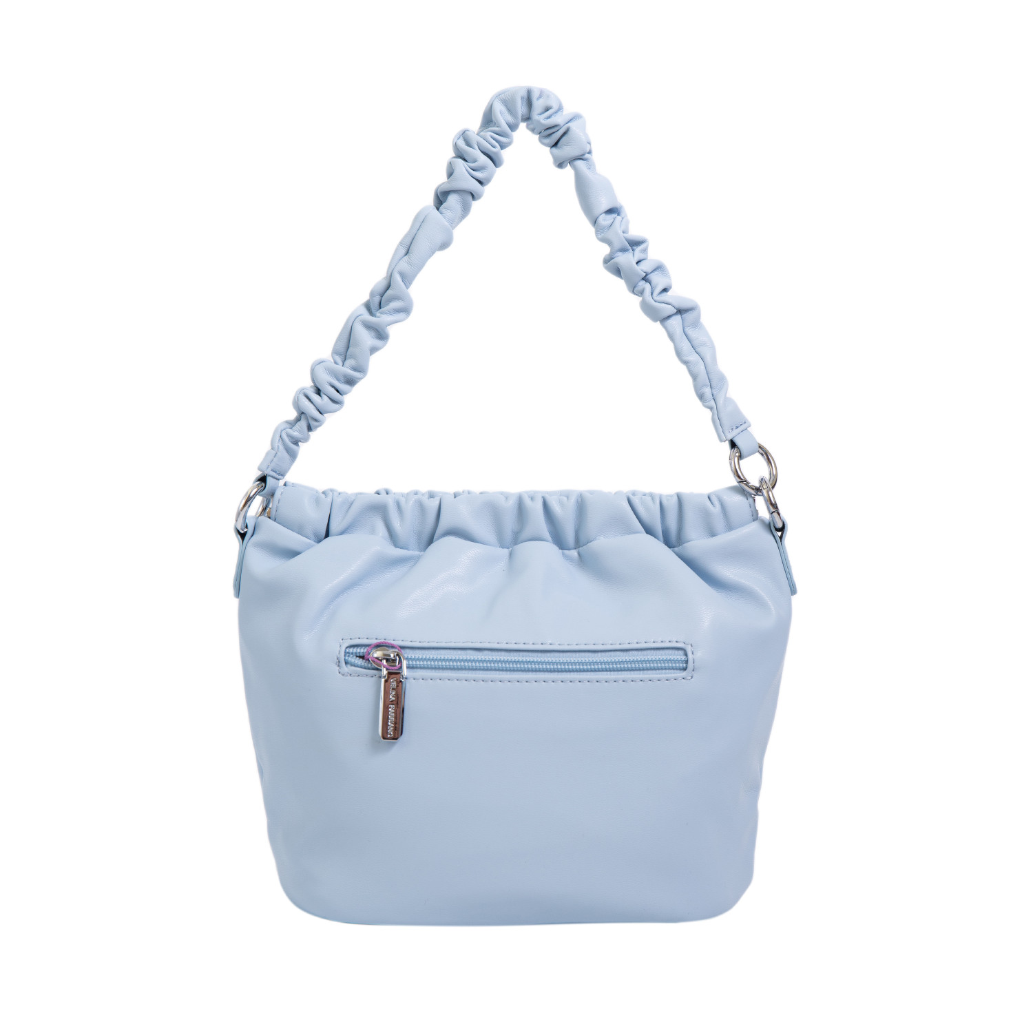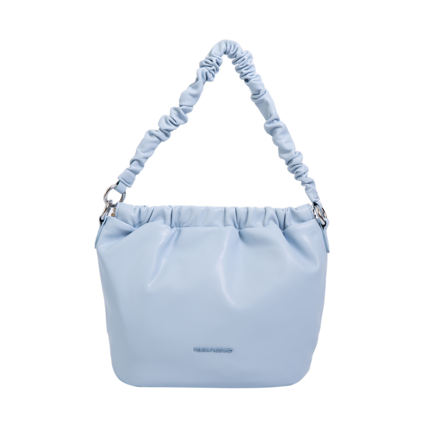 Сумочка на одне основне відділення, що закривається на механізм "крокодил". Усередині підкладковий матеріал з логотипом виробника, на бічних стінках дві кишені на блискавках і три відкриті кишені. Фурнітура блискучі срібло. У комплекті тонкий плечовий ремінь із регулюванням довжини та короткий ремінець. Каркас м'який. Розміри: ширина 24 см, висота 21 см, дно 11 см