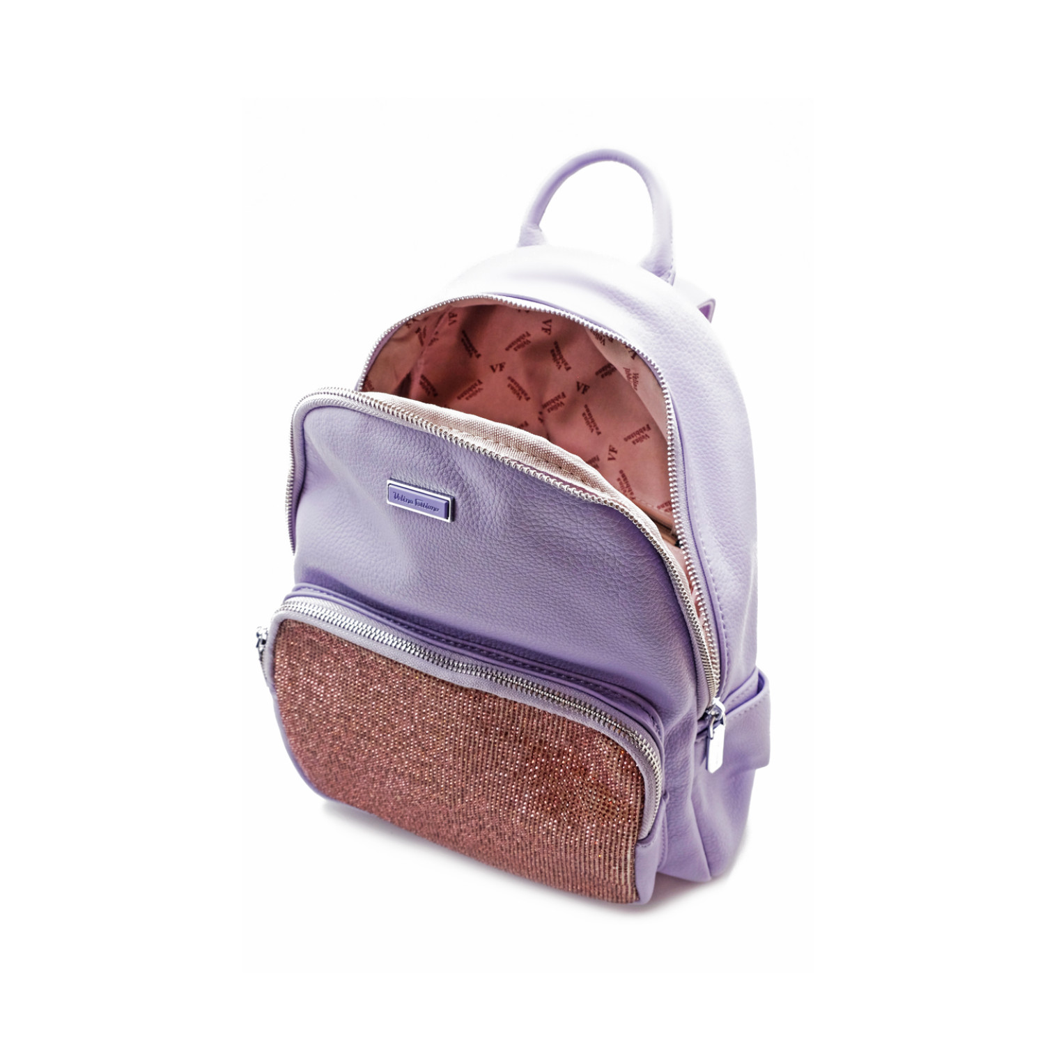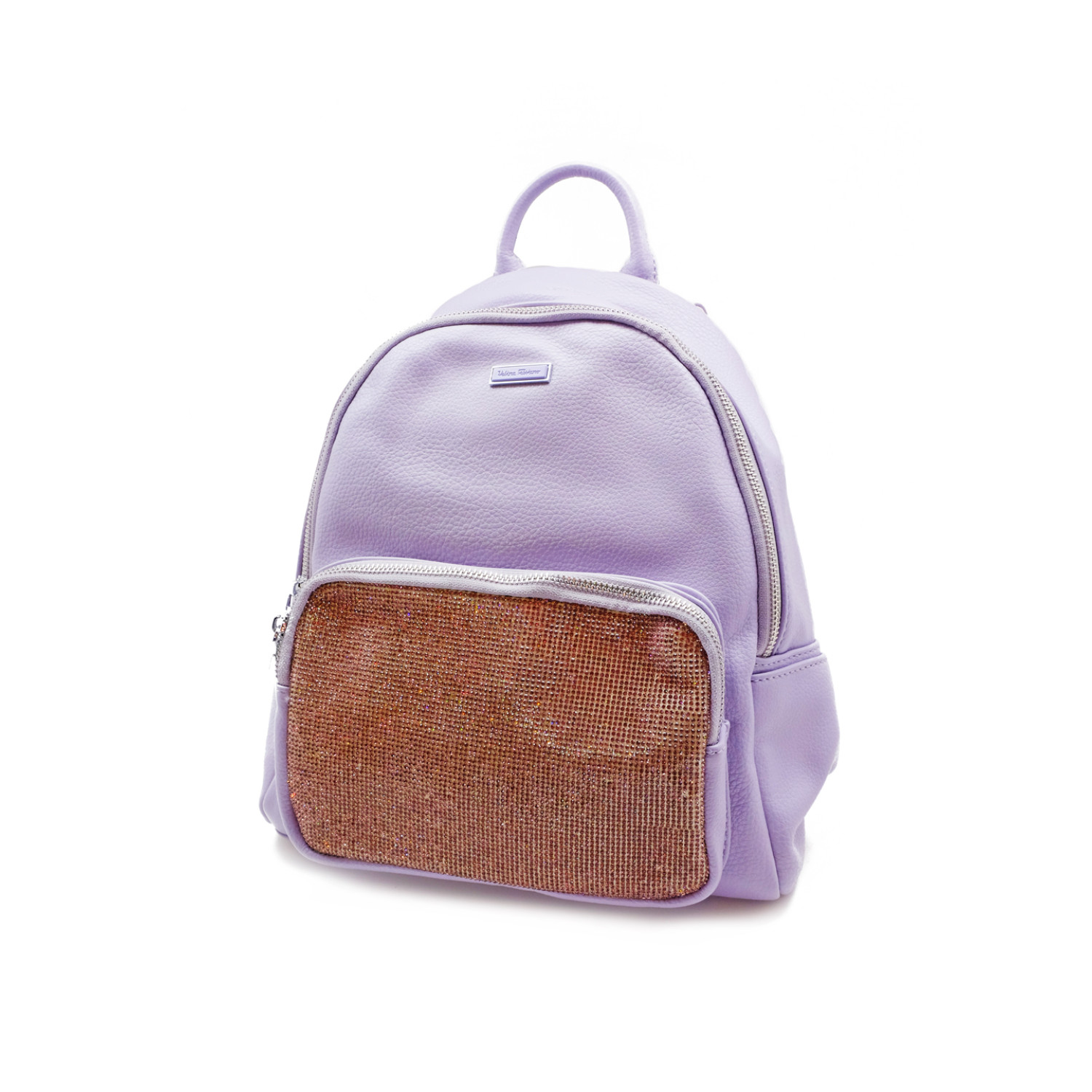 Стильний міський рюкзак інкрустований стразами. Закривається на блискавку, всередині основного відділення є чотири додаткові кишені. Позаду кишеню на блискавці. Розміри: ширина 34 см, висота 30 см, дно 10 см. Висота ручки: 8 см